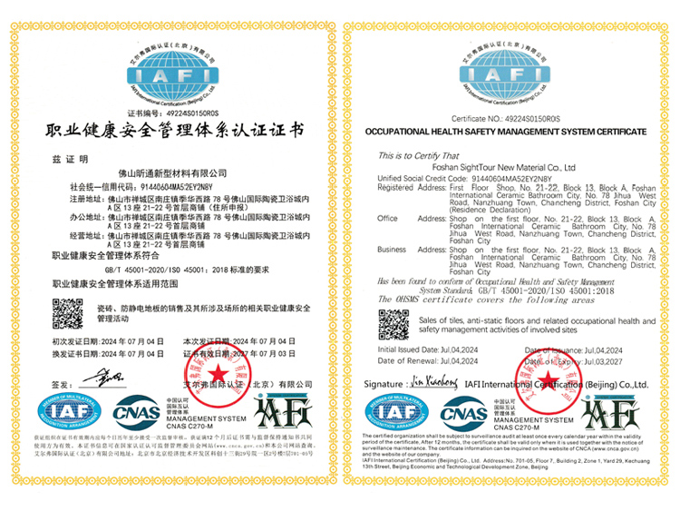 本公司已獲得ISO9001質量管理體系、ISO14001環境管理體系、ISO45001健康安全管理體系的認證。
